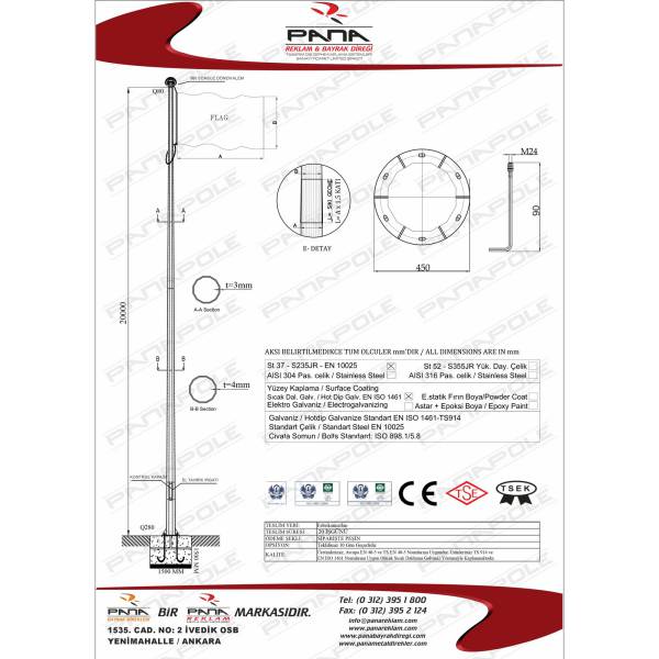 20 Metre Galvaniz Bayrak Direği İhtiyaçlarınızda Bize Ulaşabilirsiniz. Projenize uygun montaj hizmetiyle bayrak direği ihtiyacınıza çözüm sağlayabiliriz.